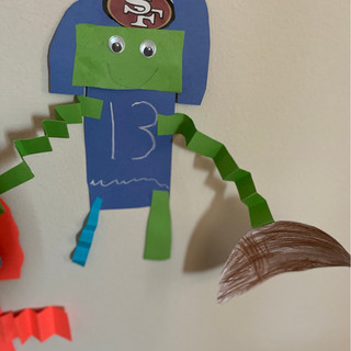 Here are some snapshots of Football day yesterday! We kicked it off with the kids playing outside in the sprinkler. Next, they came inside to learn a little about the game of football. Then, I had them select what NFL team logo they liked to print out as well as what color construction paper they wanted for their team uniform as they created their own football player. And last, although not captured in the pics, they had a blast playing flag football with their dad. (Warning: Avoid playing this game when the grass is still wet lol)